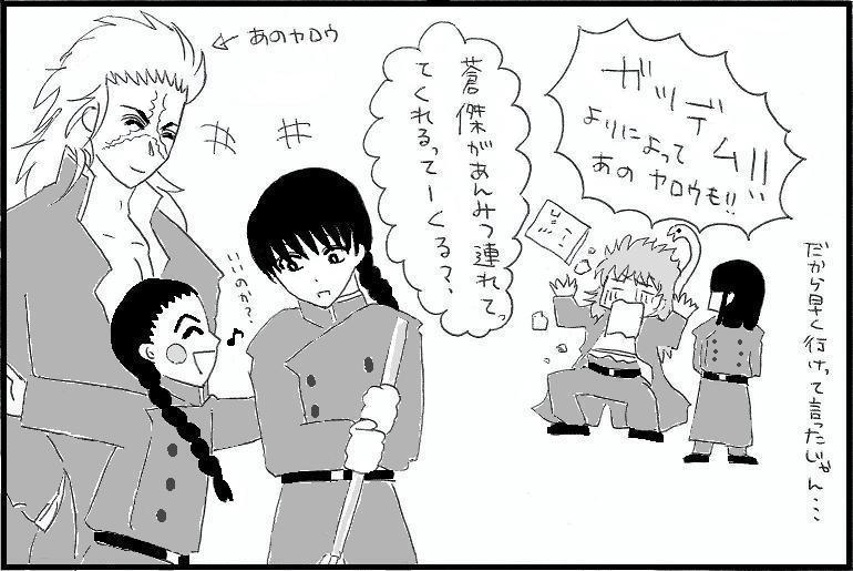 恋する蛇使いしりぃずvvvこのしりぃずは管理人が以前より妄想していた新入生学園ラブコメギャグを形にしてみた、という無計画も甚だしいしりぃずであり、しかもしりぃずと言ったところで定期的な更新があるか謎ですw↓うちでの新入生基本設定(一応七牙以降の塾での学園生活を描いていけたらと思っていますvうほw)ふう傑=嶺厳に思いを寄せている。気を引こうと話しかけるも根暗・親父ギャグで逆に退かれうまくいかない。嶺厳=ふう傑の想い人。一見恋愛などに興味無いが、蒼傑の大人の魅力に惹かれ(憧れ)ている(ふう傑涙目)鴻元=ふう傑の親友ポジ。いつももたもた冴えないふう傑にイライラしつつも付き合ってくれる中々良い奴。蒼傑=さわやかお兄さん。泊鳳の世話係なのでいつも泊鳳と一緒。ふう傑が勝手にライバル視している。泊鳳=まだ子供なのでお菓子や遊びに目が無い。年が近い嶺厳ととても仲が良いのでよくつるんでいる。ファラオ=誰とでも打ち解けてどこでも一緒に行くおちゃらけ野郎。だがその性格をふう傑に羨ましがられている。豪毅=基本的に新入生とつるむよりも桃達とつるんでいるのであまり出現しないが、普通のお兄ちゃんである。
