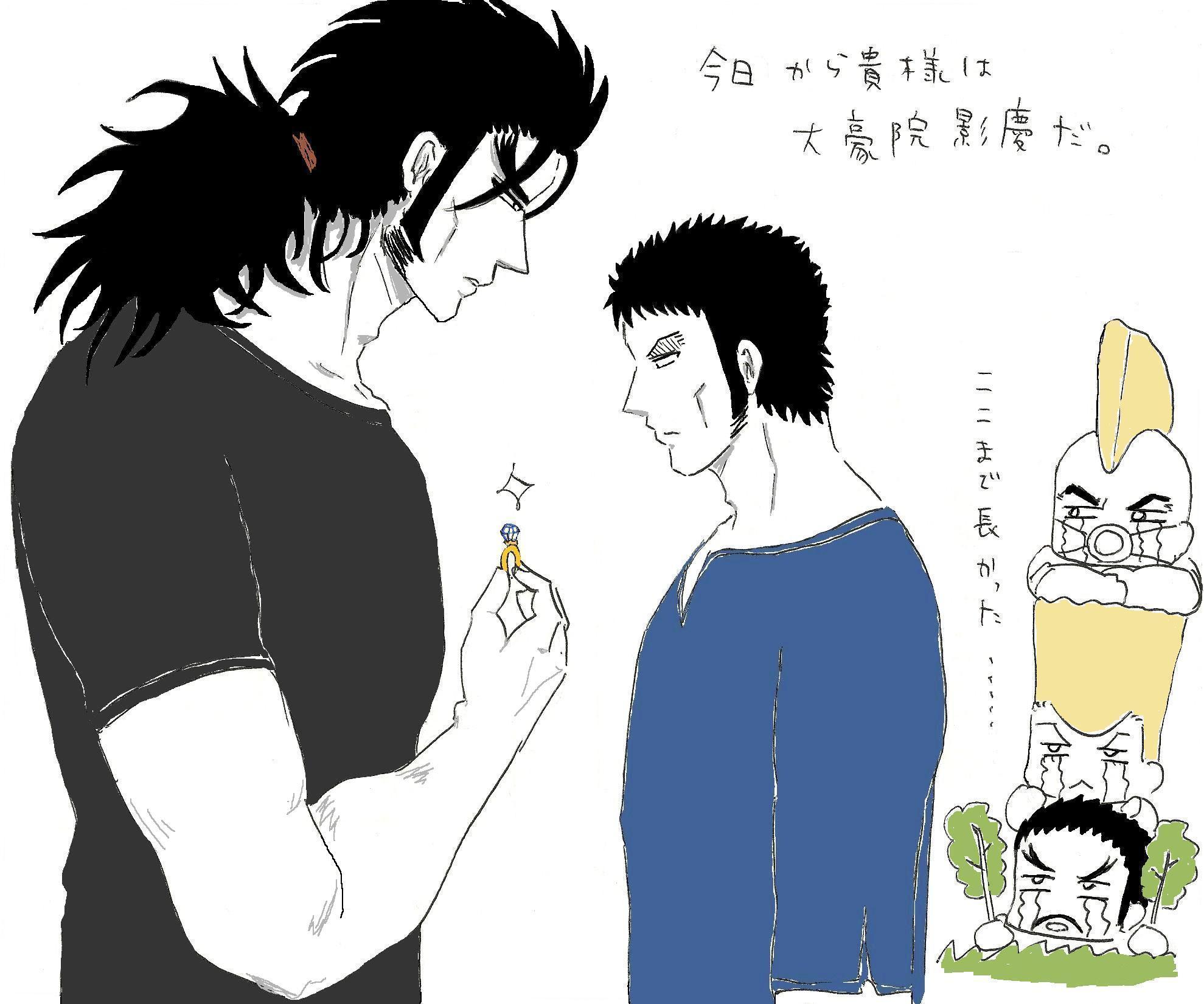 若葉が生い茂る公園の湖のほとりとかで唐突に邪鬼様影慶先輩にプロポーズ大作戦です。